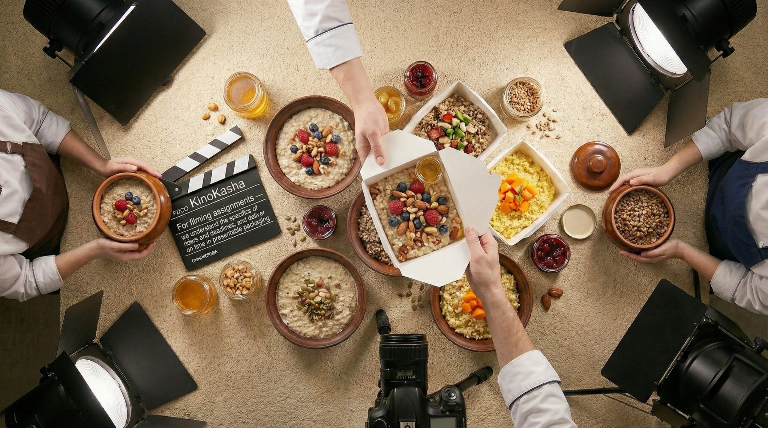 КиноКаша — кейтеринг для съёмочных площадок и мероприятий в Москве и Московской области. Готовим и доставляем ланчи и сеты: разнообразие блюд, сбалансированный состав, своё производство из свежих продуктов.